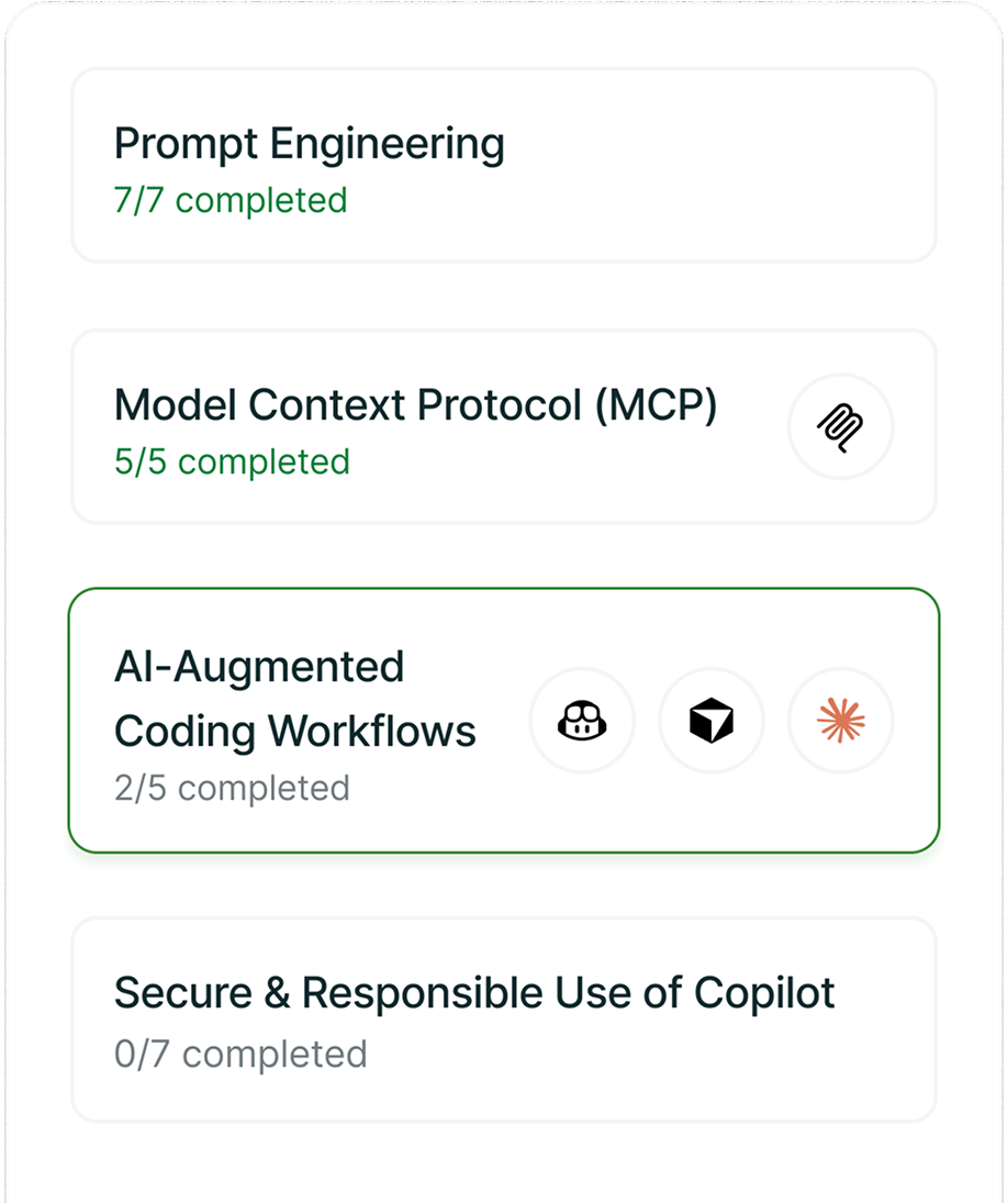 Strong foundations come first. These courses focus on AI-assisted workflows and the systems that support modern, scalable software.