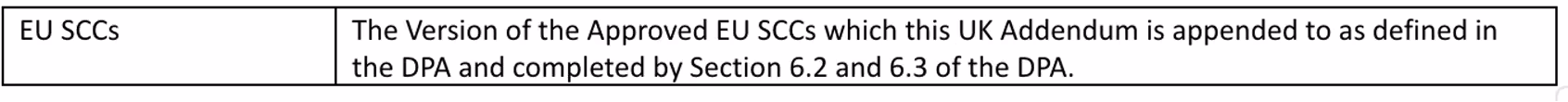 - “UK SCCs” means the EU SCCs, as amended by the UK Addendum.