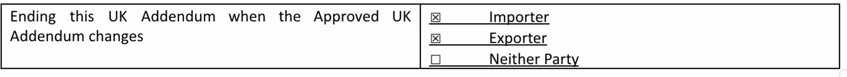 - Table 4: Ending this UK Addendum when the Approved UK Addendum Changes