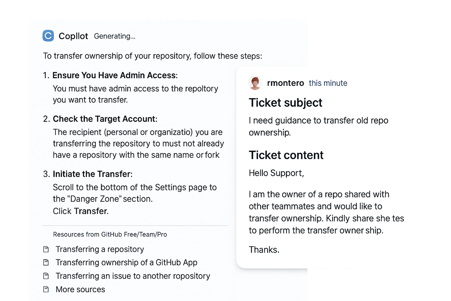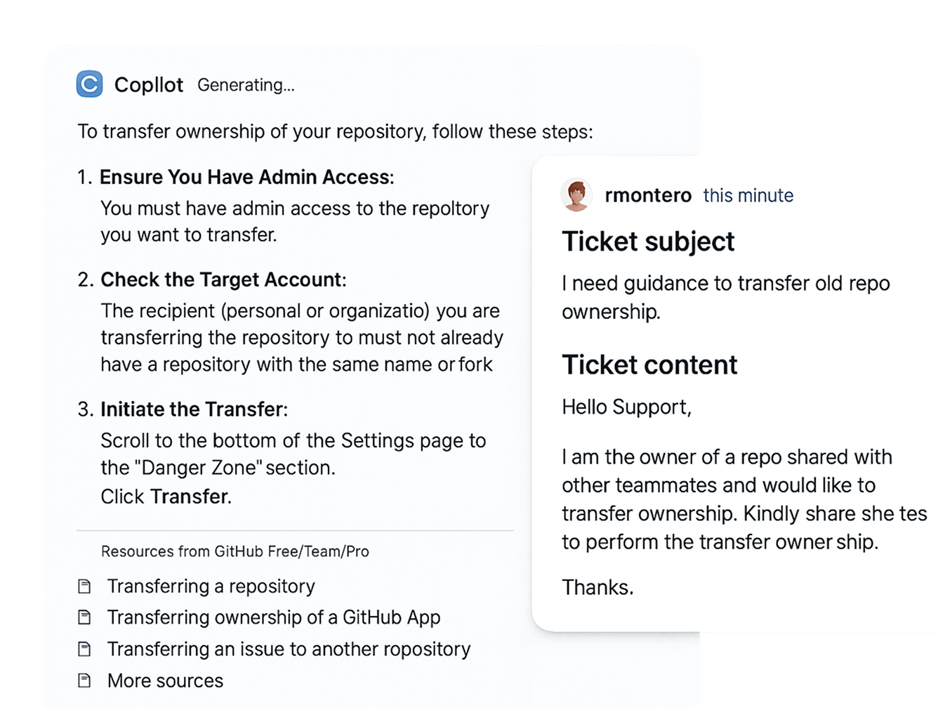 GitHub’s support stack was built for developer-grade speed and complexity. Its deeply integrated Zendesk system—enhanced by automation, Copilot, and AI—enabled intelligent triage, contextual routing, and high-velocity resolution at scale.